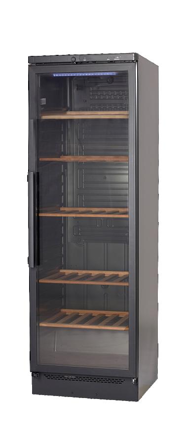 El armario para vino VKG ofrece un diseño elegante para almacenar y exponer el vino. Dispone de puerta de cristal, estantes de madera ajustables e iluminación LED para una excelente presentación del producto. Dispone de un control exacto de la temperatura y un filtro de carbono, lo que garantiza unas condiciones óptimas para almacenar el vino.
