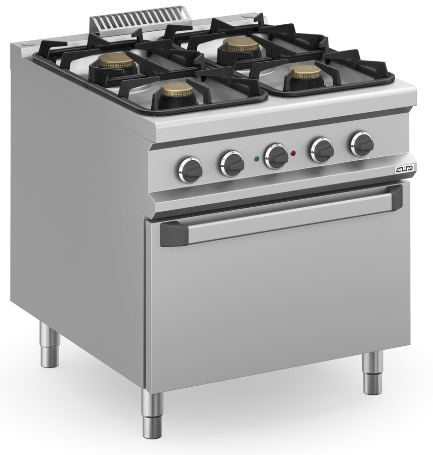 Horno a gas: e equipado con un quemador de 7 kW (10 kW para horno maxi) con llama autoestabilizada; regulación termostática de temperatura con válvula de seguridad y termopar; encendido piezoeléctrico del quemador.