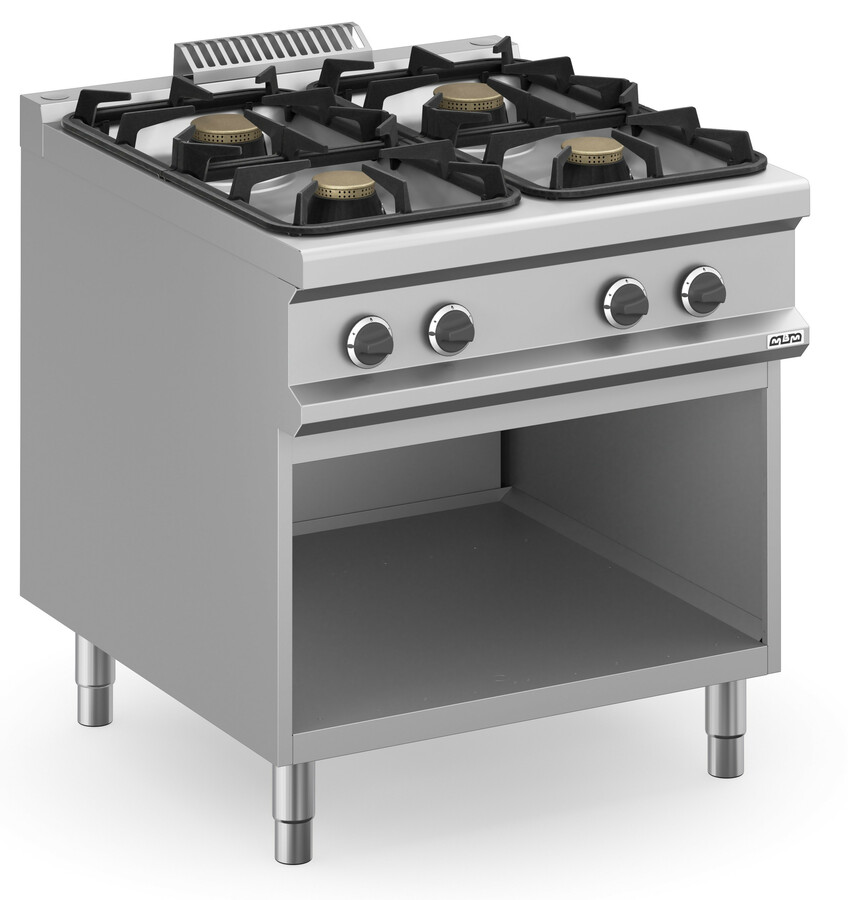 Horno a gas: e equipado con un quemador de 7 kW (10 kW para horno maxi) con llama autoestabilizada; regulación termostática de temperatura con válvula de seguridad y termopar; encendido piezoeléctrico del quemador.
