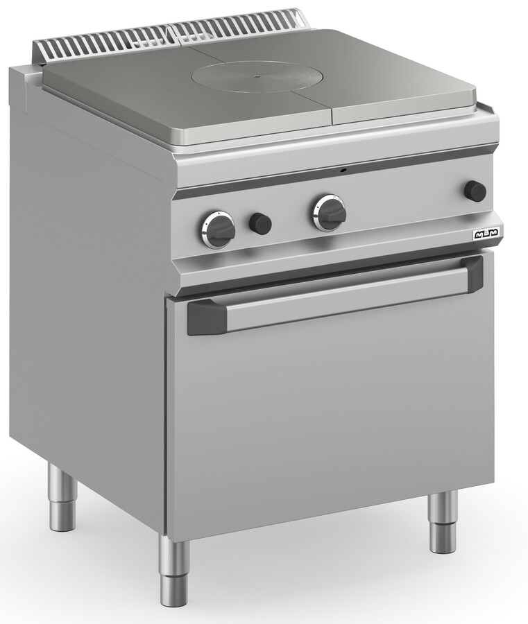 •Horno a gas: equipado con un quemador de 6 kW (8 kW para horno maxi) con llama autoestabilizada; regulación termostática de temperatura con válvula de seguridad y termopar; encendido piezoeléctrico del quemador.