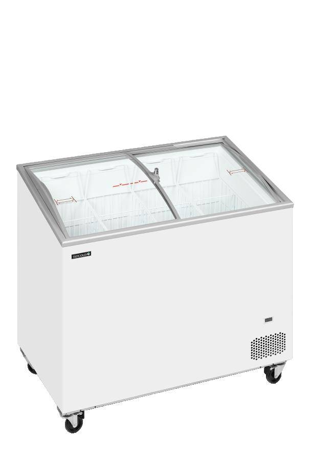 Congelador horizontal con tapas correderas de cristal curvo