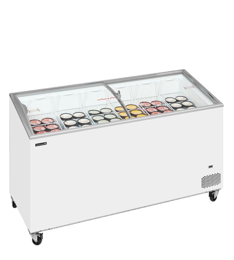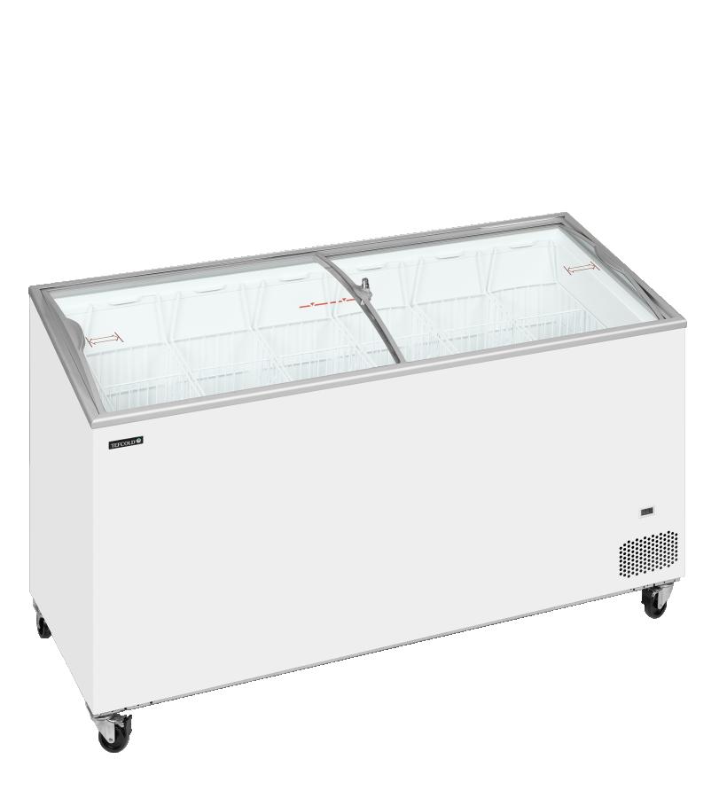 Congelador horizontal con tapas correderas de cristal curvo