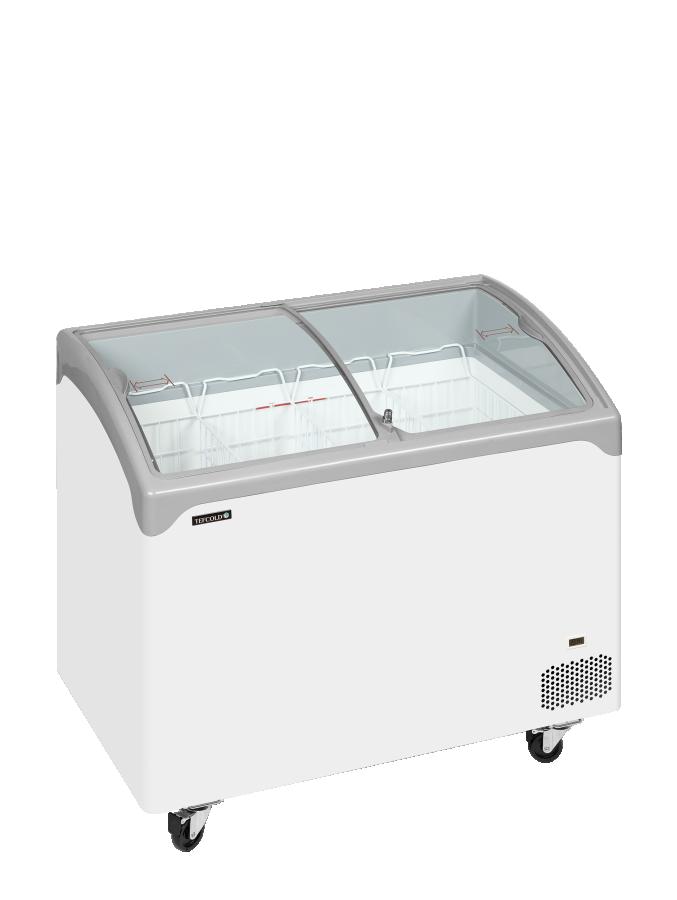 Elegante congelador horizontal con tapas correderas de cristal curvo