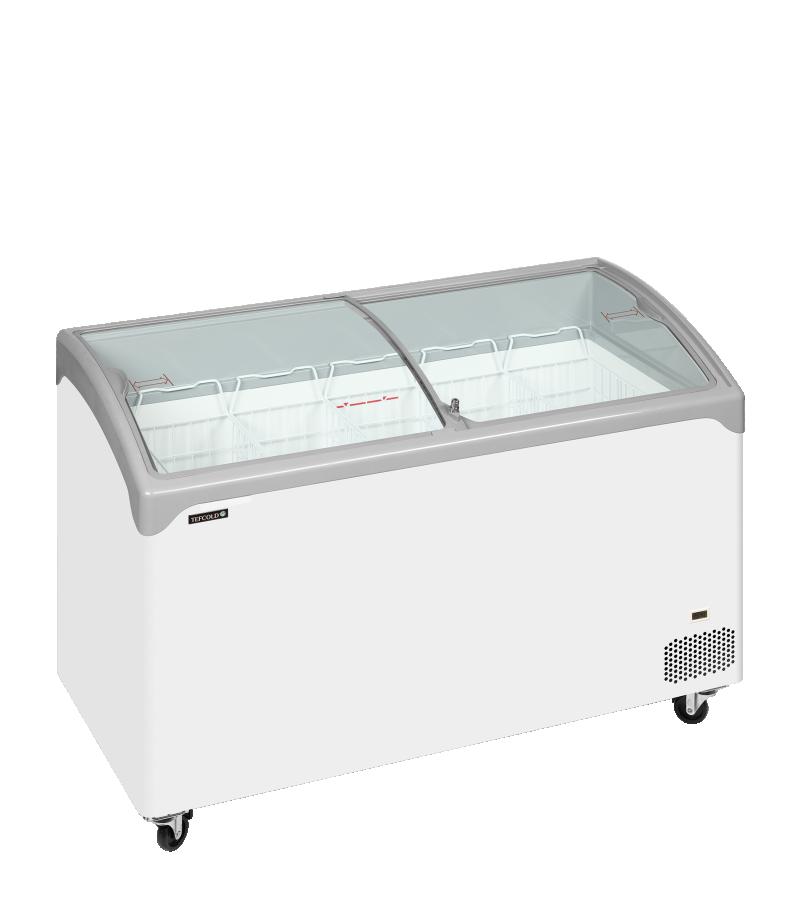 Elegante congelador horizontal con tapas correderas de cristal curvo
