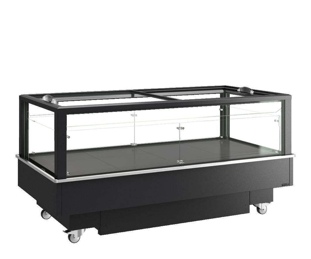 Fácil conmutación entre refrigerador y congelador|Clase de temperatura 3M1/3L1|Costados de cristal para una mejor presentación de los productos|Refrigeración forzada|Luz interior LED|Tapas de cristal deslizantes|Unidad de control con conectividad Bluetooth y NFC|Exportación de datos de cumplimiento HACCP|Barras parachoques de acero inoxidable en los cuatro lados|Portaprecios incluido|Ruedas, 2 bloqueables