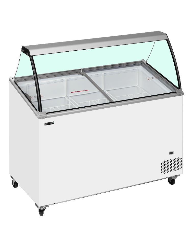 La gama IC-SO de vitrinas de helados ofrece una excelente calidad a un precio competitivo. El modelo cuenta con tapas deslizantes que permiten un fácil acceso al helado para servir y ayuda a aislar la unidad cuando no está en uso. Dispone de una tapa de cristal tipo vitrina y es idónea para la personalización con la marca para atraer la atención de los clientes hacia la unidad y su gélido contenido. El congelador se optimiza con cestos que pueden alojar tarrinas de plástico de 5 litros en la parte superior y dispone de espacio de almacenamiento debajo.