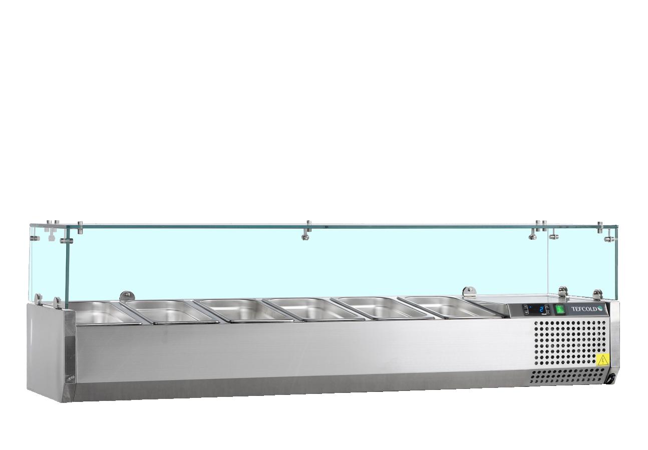 La gama VK de vitrinas refrigeradas es un excelente complemento para mesas frías, ya que te permite tener a mano todo lo necesario para la preparación de alimentos. Es compatible con bandejas GN1/4 y GN1/6 (no incluidas). Este refrigerador está fabricado en acero inoxidable SS304 y presenta pantalla de cristal para proteger los alimentos. Es idóneo para pizzerías, restaurantes de comida rápida y bocaterías.