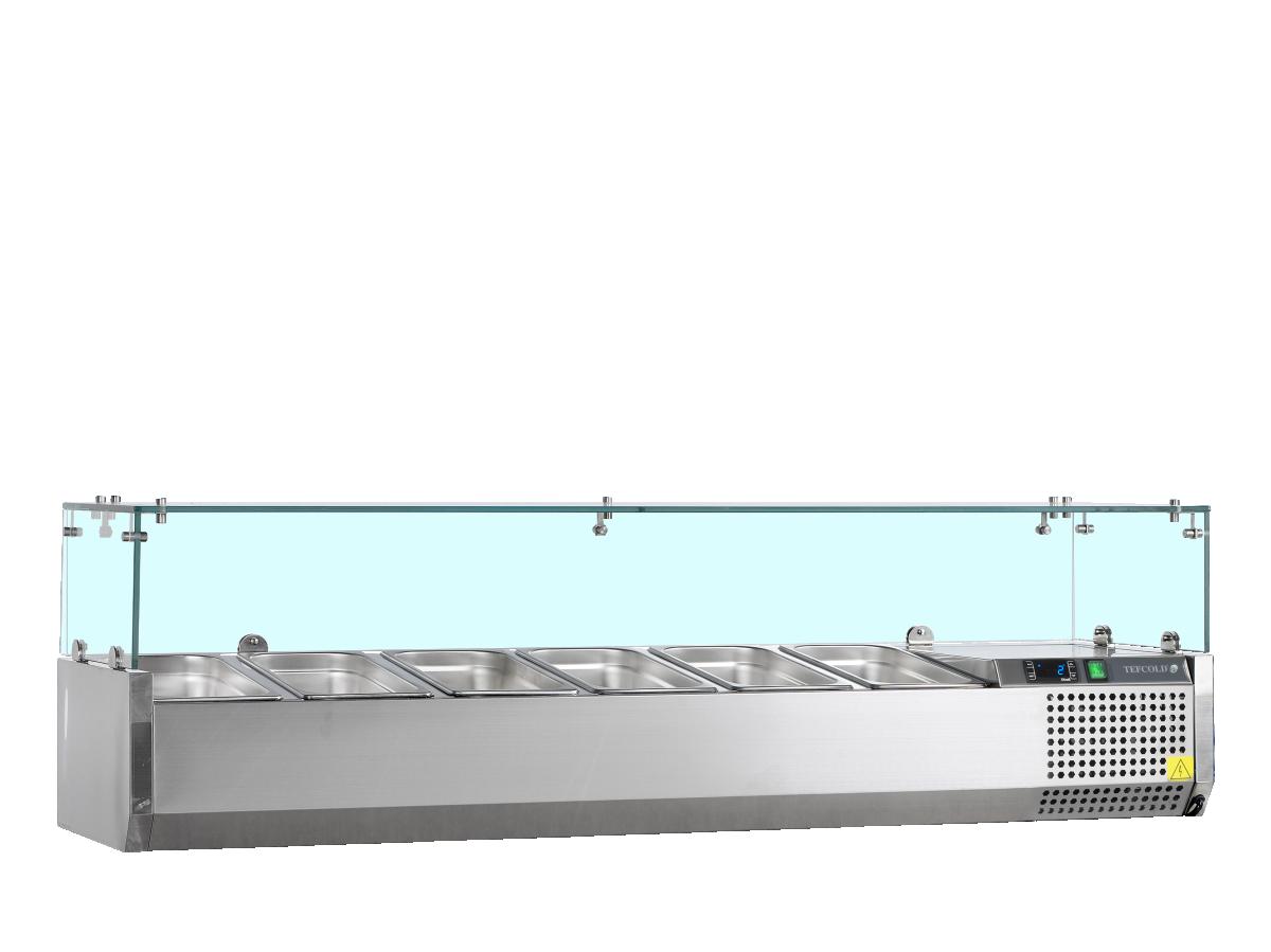 La gama VK de vitrinas refrigeradas es un excelente complemento para mesas frías, ya que te permite tener a mano todo lo necesario para la preparación de alimentos. Es compatible con bandejas GN1/4 y GN1/6 (no incluidas). Este refrigerador está fabricado en acero inoxidable SS304 y presenta pantalla de cristal para proteger los alimentos. Es idóneo para pizzerías, restaurantes de comida rápida y bocaterías.