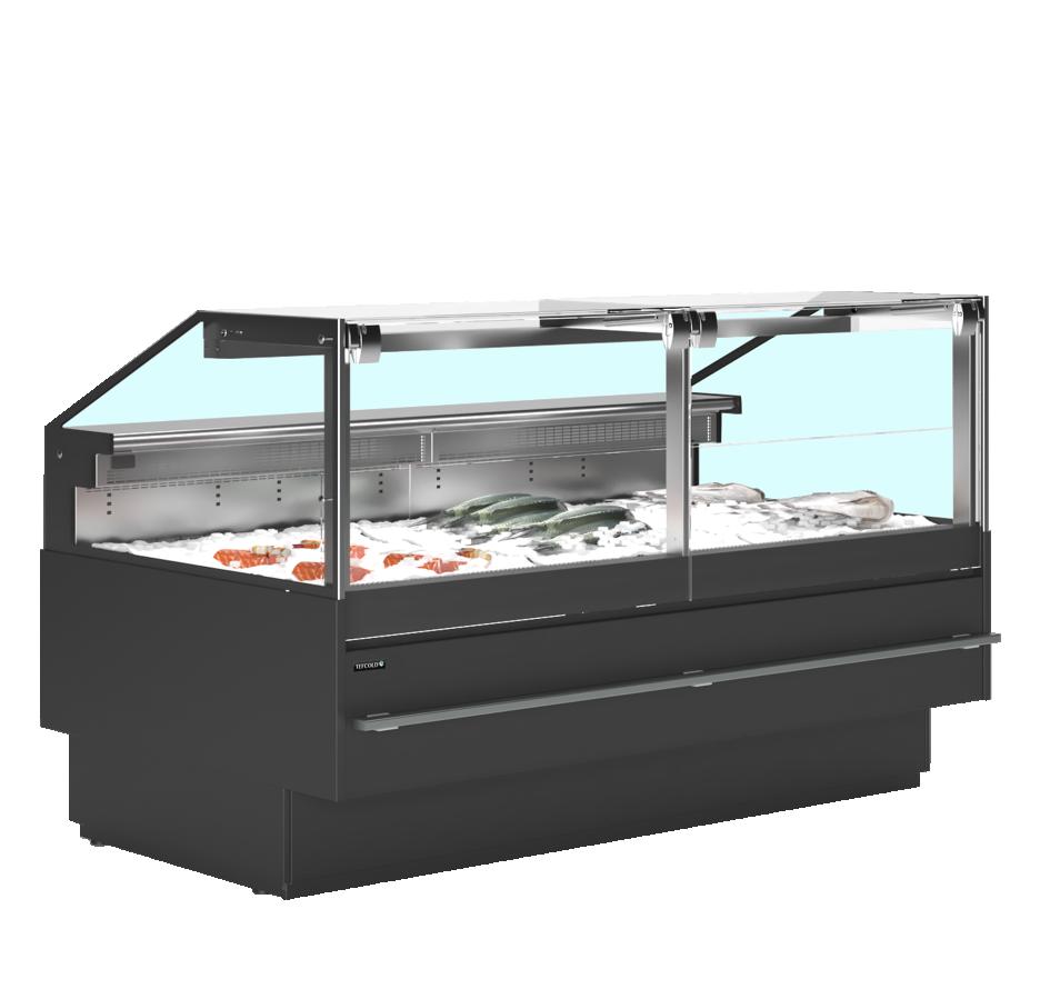 La gama SOCA-F de vitrinas refrigeradas está diseñada específicamente para la exposición de pescado fresco en hielo. La cubierta de acero inoxidable de estas unidades está formada por una bandeja de 50 mm de profundidad para acomodar el hielo. El cristal frontal se levanta para facilitar la limpieza y el cristal es antivaho. Puede personalizarse con accesorios y multiplexarse para obtener una solución de mostrador completa.