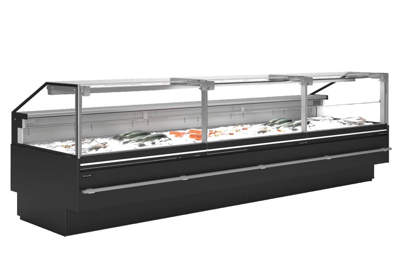 La gama SOCA-F de vitrinas refrigeradas está diseñada específicamente para la exposición de pescado fresco en hielo. La cubierta de acero inoxidable de estas unidades está formada por una bandeja de 50 mm de profundidad para acomodar el hielo. El cristal frontal se levanta para facilitar la limpieza y el cristal es antivaho. Puede personalizarse con accesorios y multiplexarse para obtener una solución de mostrador completa.