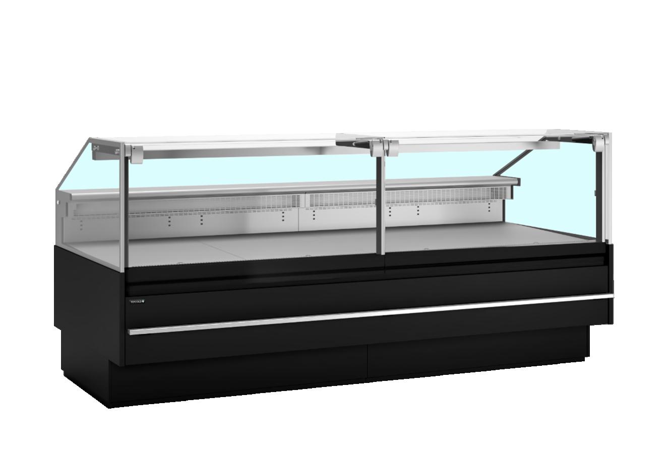 Acabado negro|Excelente visibilidad de producto|Cubierta de acero inoxidable de 900 mm de fondo|Cristal frontal antiempañamiento|El frontal de cristal se eleva para una fácil limpieza|Estante trasero de acero inoxidable|Refrigeración forzada|Temperature Class 3M1|Luz superior LED|Paragolpes de acero inoxidable|2 tomas de 220-240V en la parte trasera|Kit de montaje como accesorio